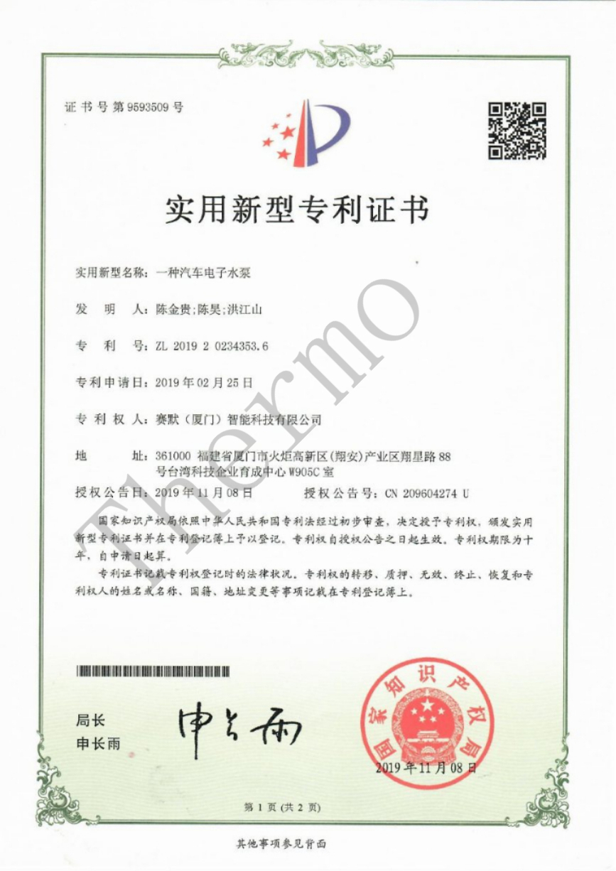 實(shí)用新型專利證書
